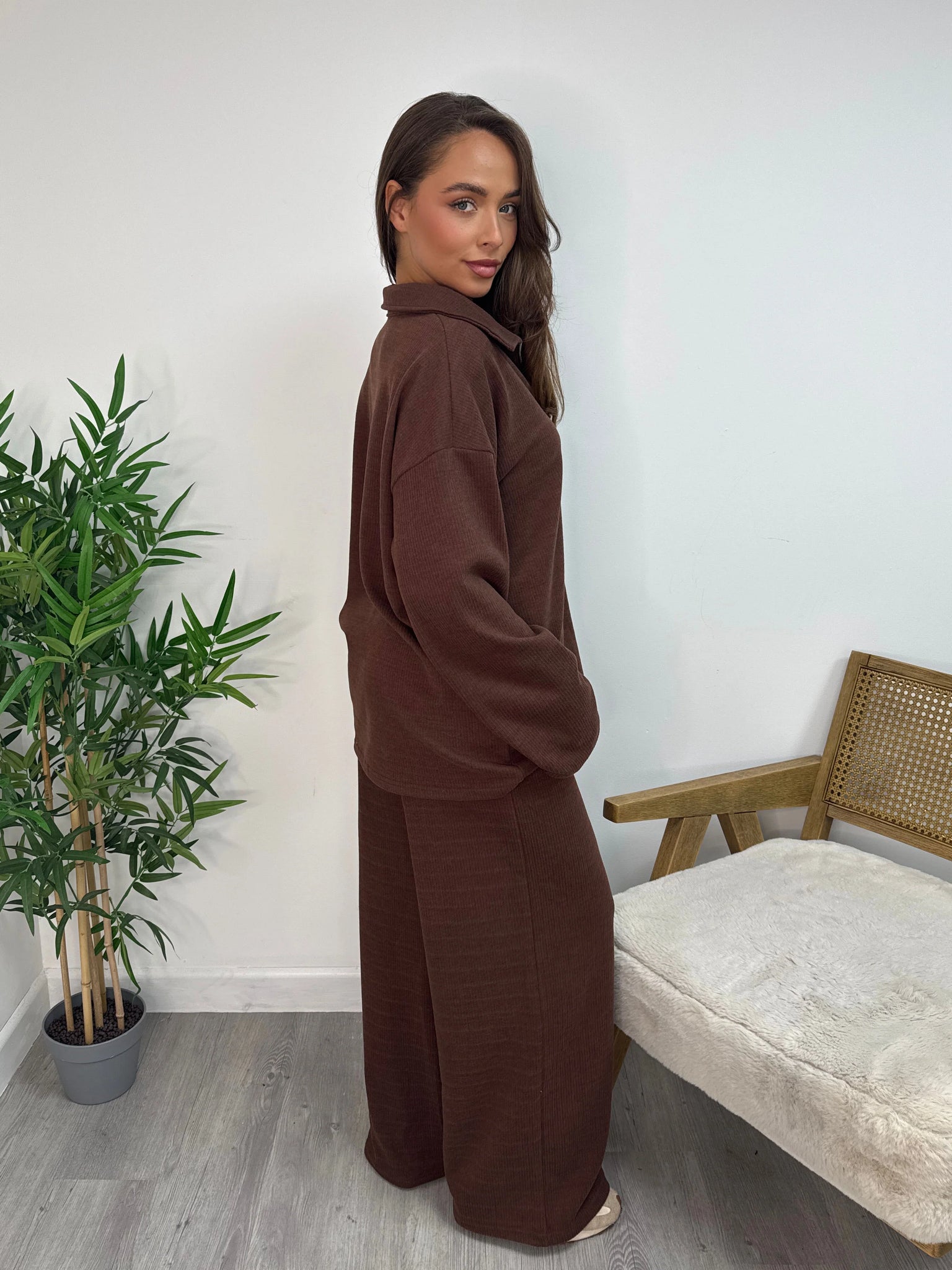 Keep it effortlessly cool in this textured zip lounge set. This relaxed co-ord features an oversized long-sleeve top with a half-zip collar and wide-leg trousers for that laid-back, luxe vibe. The subtle ribbed texture gives it a premium edge while staying ultra-comfortable, perfect for everyday wear or off-duty styling. Whether it’s airport days, coffee runs or chilled weekends, this set delivers the clean-girl aesthetic with zero effort.