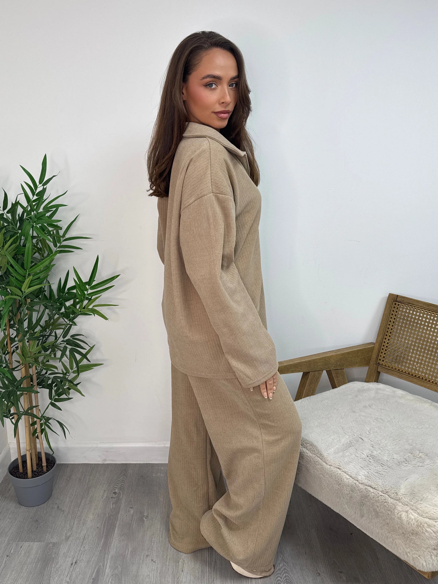 Keep it effortlessly cool in this textured zip lounge set. This relaxed co-ord features an oversized long-sleeve top with a half-zip collar and wide-leg trousers for that laid-back, luxe vibe. The subtle ribbed texture gives it a premium edge while staying ultra-comfortable, perfect for everyday wear or off-duty styling. Whether it’s airport days, coffee runs or chilled weekends, this set delivers the clean-girl aesthetic with zero effort.