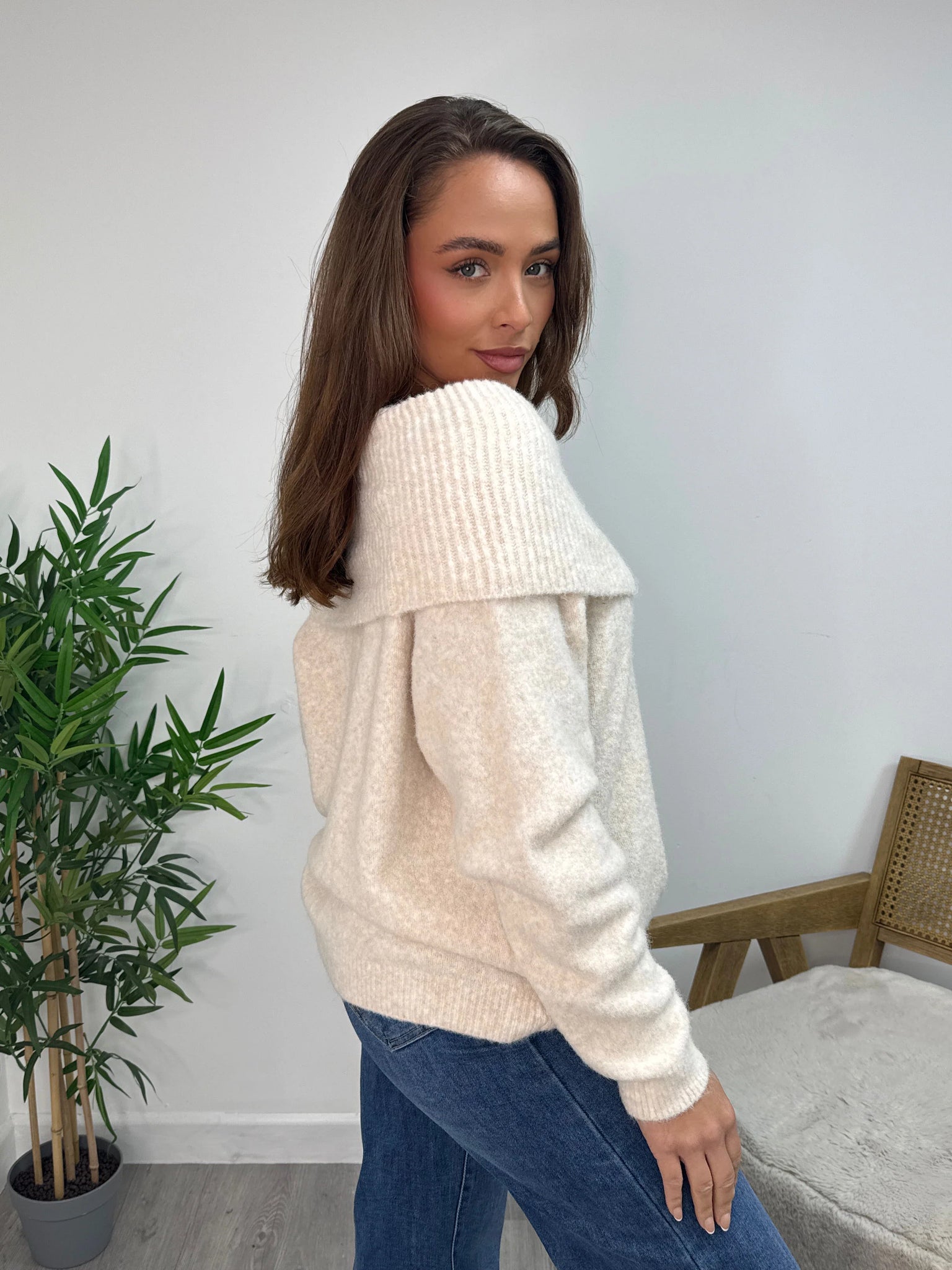Cream Off Shoulder Cosy Knit Baggy Jumper